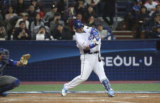 South Korea's Dae-Ho Lee fouls off a pitch against Israel during the fifth inning of their first round game of the World Baseball Classic at Gocheok Sky Dome in Seoul, South Korea, Monday, March 6, 2017. (AP Photo/Lee Jin-man)
