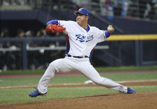 South Korea's pitcher Seung Hwan Oh throws against Israel during the ninth inning of the first round game of the World Baseball Classic at Gocheok Sky Dome in Seoul, South Korea, Monday, March 6, 2017. (AP Photo/Lee Jin-man)