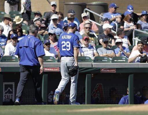The 33-year-old Kazmir said he felt out of sorts during his pregame warmup and the first inning. He was 10-6 with a 4.56 ERA in 26 last starts last season, his first with the Dodgers, struggling with mechanics and flexibility because of injuries.