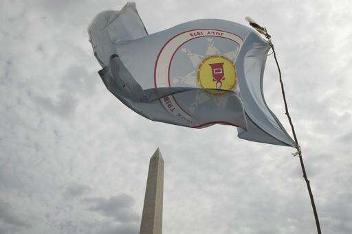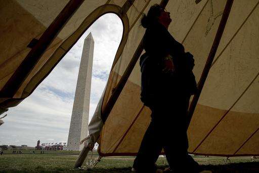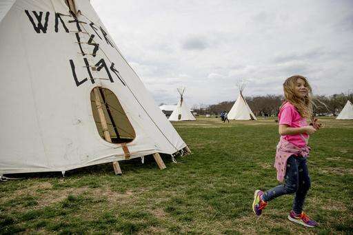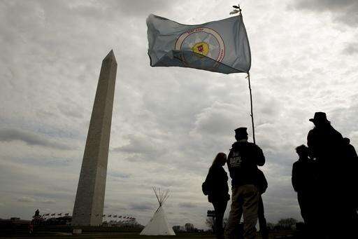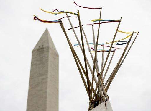 A group protesting the Dakota Access oil pipeline has set up teepees on the National Mall near the Washington Monument in Washington, Tuesday, March 7, 2017. A federal judge declined to temporarily stop construction of the final section of the disputed Dakota Access oil pipeline, clearing the way for oil to flow as soon as next week. (AP Photo/Andrew Harnik) The Associated Press