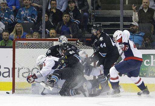 Martin Jones had 25 saves and improved to 31-16-6. Braden Holtby stopped 20 shots for Washington, dropping to 34-10-5.