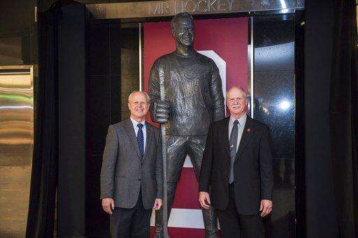 The Hall of Fame unveiled a nearly 8-foot statue of the late Detroit Red Wings star Friday. Howe's sons, Mark and Marty, participated in the ceremony.
