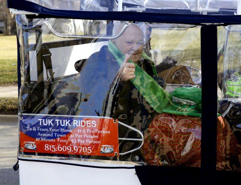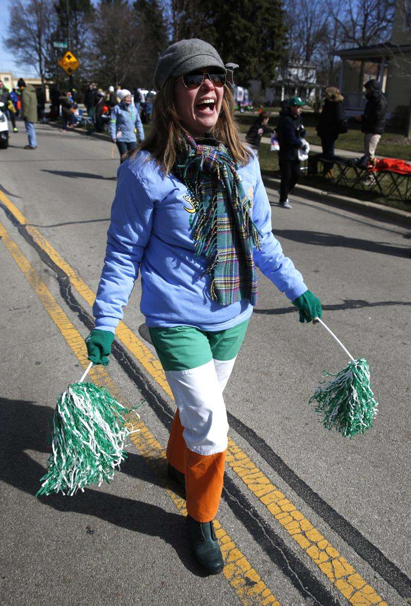 Ettie Randels, who was born and raised in Ireland, marched in the parade after she helped assist a 5K race in Naperville earlier in the morning.