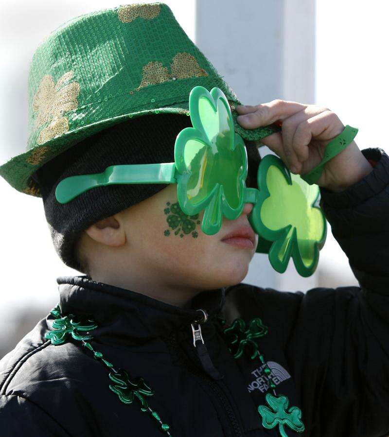 Mason Znenovec of Naperville rides on the John Greene Realtor float at the West Suburban Irish's 24th annual St. Patrick's Day parade Saturday in Naperville. Daniel White/dwhite@dailyherald.com