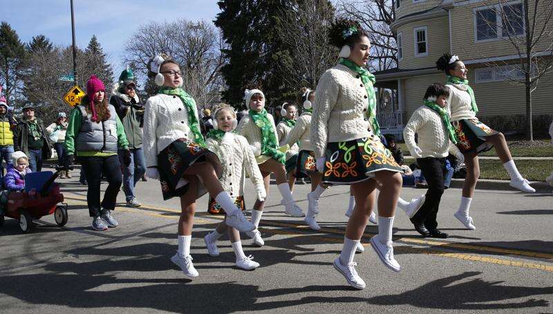 The McNulty Irish dancers march down Mill Street during the West Suburban Irish's 24th annual St. Patrick's Day parade Saturday in Naperville. Daniel White/dwhite@dailyherald.com