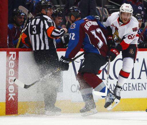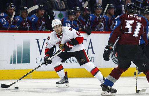 NOTES: Colorado's 16 shots tied a season low. ... Senators D Mark Borowiecki missed his second straight game with an undisclosed injury. Second-leading scorer Mark Stone was out after suffering a lower-body injury against Arizona on Thursday. C Kyle Turris missed his third straight game with a fractured finger. ... Avalanche C Matt Duchene has gone pointless in the past 10 games and has just one goal in his past 25. ... Ottawa recalled Phil Varone from Binghamton of the AHL. ... Colorado C Mikhail Grigorenko was scratched for the fourth time this season.