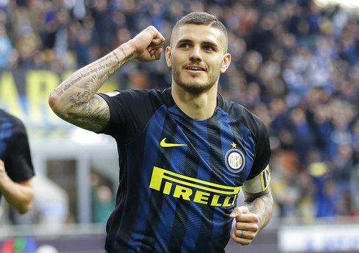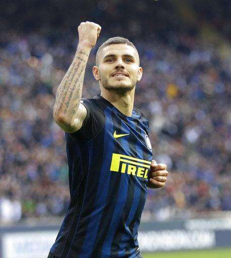 Inter Milan's Mauro Icardi celebrates after scoring during the Serie A soccer match between Inter Milan and Atalanta at the San Siro stadium in Milan, Italy, Sunday, March 12, 2017. (AP Photo/Antonio Calanni) The Associated Press
