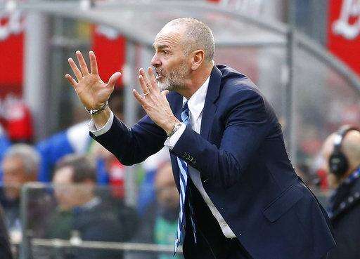 Inter Milan coach Stefano Pioli gives instructions during the Serie A soccer match between Inter Milan and Atalanta at the San Siro stadium in Milan, Italy, Sunday, March 12, 2017. (AP Photo/Antonio Calanni) The Associated Press