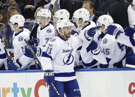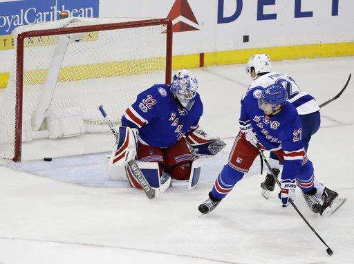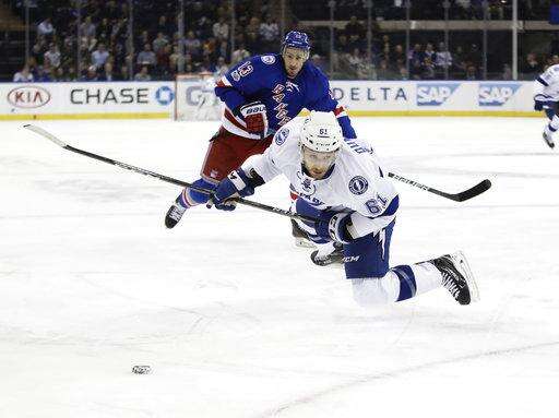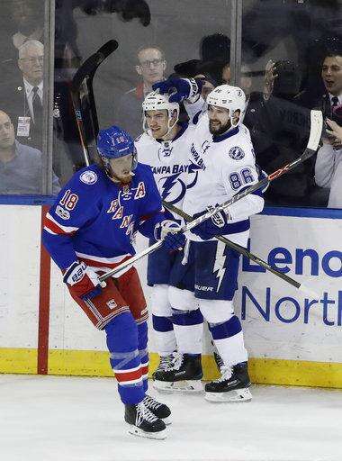 Point's 2nd goal snaps tie in 3rd, Lightning top Rangers 3-2