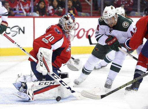 NOTES: There were 12 minor penalties called - seven on the Capitals and five on the Wild - leading to almost a third of the game being played on special teams. ... Tom Wilson picked up an instigator penalty and 10-minute misconduct resulting from a fight with Ryan White. Holtby said after the game that Wilson didn't deserve the instigator and also took issue with a tripping penalty on Karl Alzner. ... Schmidt was only in the lineup because D Kevin Shattenkirk was serving the second of his two-game suspension. ... Wild C Martin Hanzal missed the game with strep throat.