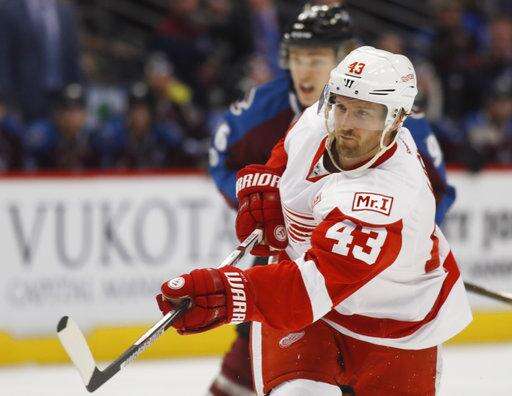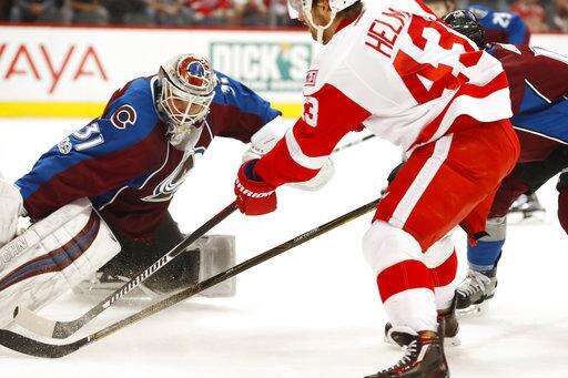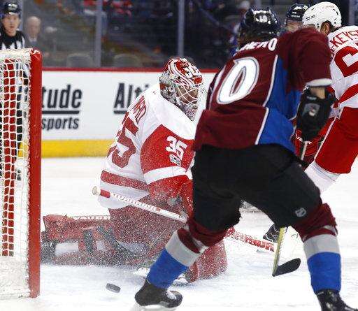 NOTES: Howard played in his 394th game, tying Mike Dunham for 12th among American-born goalies. . The Avalanche recalled 22-year-old defenseman Anton Lindholm from San Antonio on Monday. . RW Anthony Mantha was back on the ice for the Red Wings after he was benched the previous two games.