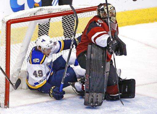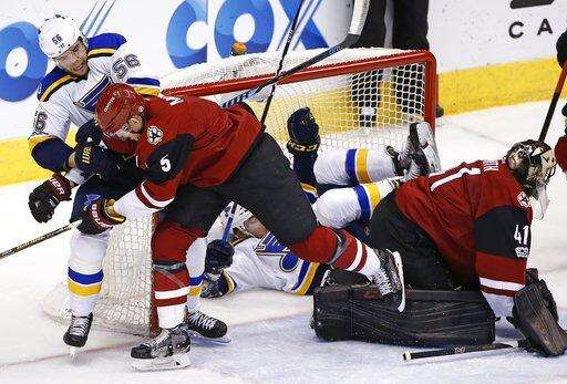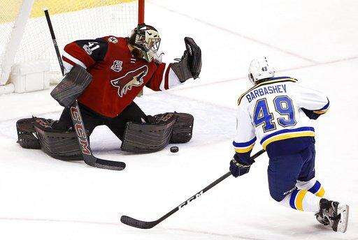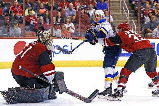 NOTES: The Coyotes held a pregame ceremony to honor veteran C Radim Vrbata, who recently played in his 1,000th career game. Vrbata's gifts for his achievement included a silver stick, a painting and a pair of tickets to the 2018 Wimbledon final. ... C Jori Lehtera (upper body injury) and F Dmitrij Jaskin (upper body) were scratched for the Blues, along with healthy scratches Jordan Schmaltz and Nail Yakupov.