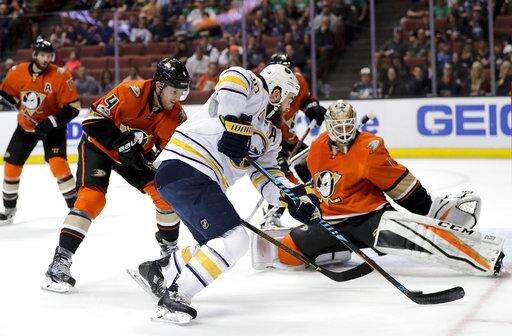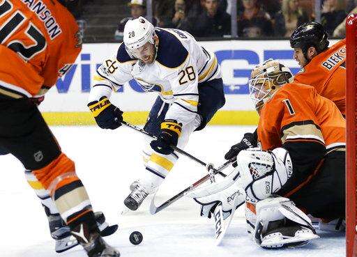 NOTES: Sabres RW Kyle Okposo (ribs) missed his eighth straight game. ... Ducks RW Ondrej Kase was a healthy scratch for the second straight game. The rookie has just one goal and one assist in his last 18 appearances. ... The Ducks lost to an opponent who faced the Kings the previous night for just the third time this season. The Ducks had been 7-2-0 against teams playing back-to-back games in Southern California.