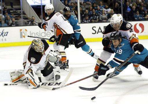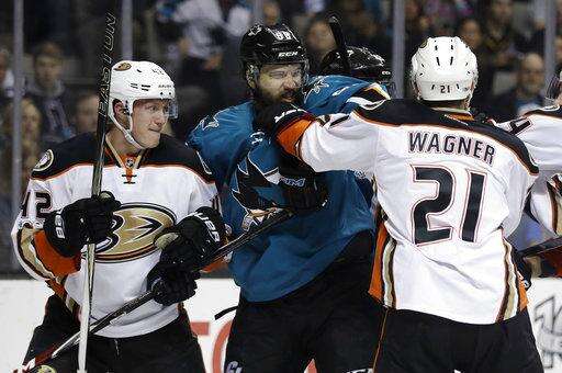 NOTES: Getzlaf recorded his 800th career point with the assist on Eaves' goal. ... Sharks F Jannik Hansen left with an undisclosed injury in the third period. ... Ducks F Andrew Cogliano played his 776 consecutive game, tying Craig Ramsay for the fourth longest streak in NHL history. ... Couture played his 500th career game.