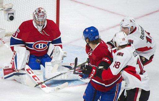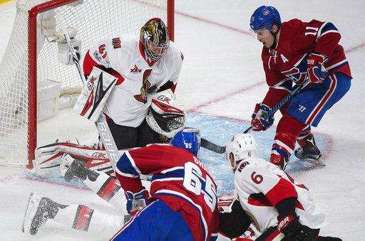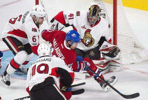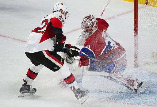NOTES: Price only faced six shots in the second period, but needed to be at his best when Kyle Turris fired a one-timer. The Canadiens goalie sprang to his right and did the splits to get his toe on the puck. ... Montreal's Alexei Emelin was back in the lineup after he was a healthy scratch in Ottawa. ... The Canadiens are 10-4-0 under Claude Julien. ... Torrey Mitchell played his 600th NHL game.