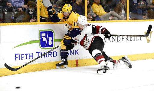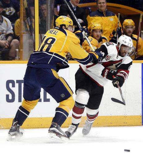 NOTES: Smith has 201 career points. ... Nashville has defeated the Coyotes six consecutive times at home. ... After spending all season in the AHL, Arizona D Zbynek Michalek appeared in his first NHL game of 2016-17. ... The Coyotes are 5-12-0 against Central Division teams this season.