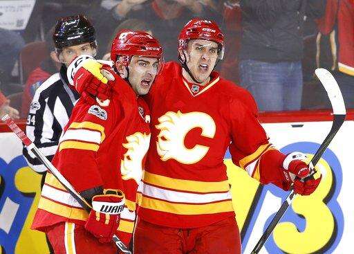 Gaudreau set up goals by Sean Monahan and Michael Stone to give the Flames an early lead, then scored the second of two Calgary goals 50 seconds apart early in the second period.
