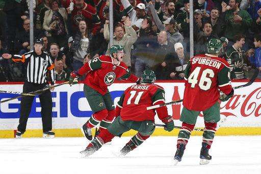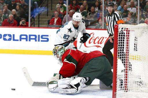 NOTES: Martin Jones made 24 saves for the Sharks. He gave up more than two goals for the first time in nine games. ... The Wild swept the season series, winning all three games, for the first time in their history. ... The Wild have gone 11 straight home games without allowing a power-play goal. ... Sharks defenseman Marc-Edouard Vlasic was a late scratch with the flu. San Jose center Chris Tierney returned after missing Monday's game with the illness. ... Dumba became the 11th player to reach the 10-goal mark for the Wild this season, matching his career high.