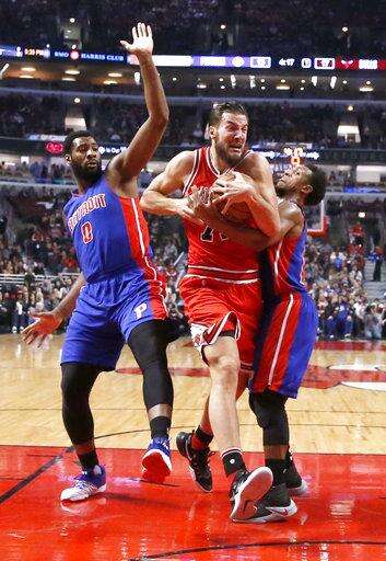 Jimmy Butler added 16 points and 12 assists. Joffrey Lauvergne filled in for suspended center Robin Lopez and outplayed Andre Drummond with 17 points and seven rebounds. Rookie Paul Zipser added a career-high 15 points as the Bulls moved into a ninth-place tie with Detroit in the Eastern Conference.