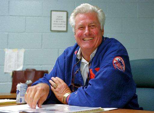 FILE - In this Feb. 14, 1996, file photo, New York Mets manager Dallas Green smiles as he holds an informal news conference in his office at the Mets' spring training complex in Port St. Lucie, Fla. Green, the tough-talking manager who guided the Philadelphia Phillies to their first World Series championship, died Wednesday, March 22, 2017, at Hahnemann University Hospital in Philadelphia, the Phillies said. He was 82. Green spent 62 years in baseball as a player, manager, general manager, team president and other roles. (AP Photo/Kathy Willens, FIle) The Associated Press