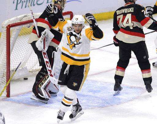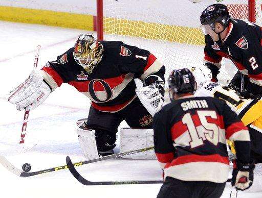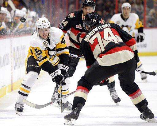 NOTES: Jyrki Jokipakka, Fredrik Claesson, Chris DiDomenico and Mark Stone were scratches for the Senators. ... Cameron Gaunce, Tom Sestito, Jake Guentzel, Carl Hagelin, Ron Hainsey and Evgeni Malkin were the scratches for the Penguins. ... Ottawa G Craig Anderson will have to wait at least until Saturday to play in his 500th career game. .Penguins F Oskar Sundqvist turned 23-years-old Thursday.