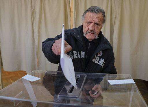 A Bulgarian man casts his vote in Sofia, Bulgaria, Sunday, March 26, 2017. Bulgarians are heading to the polls for the third time in four years in a snap vote that could tilt the European Union's poorest member country closer to Russia as surveys put Bulgarian ex-Premier Boiko Borisov's center-right GERB party neck-and-neck with the Socialist Party. (AP Photo/Vadim Ghirda) The Associated Press