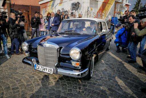 Bulgarian ex-Premier Boiko Borisov, leader of the center-right GERB party, drives a vintage Mercedes as he leaves a voting station, in Sofia, Bulgaria, Sunday, March 26, 2017. Bulgarians are heading to the polls for the third time in four years in a snap vote that could tilt the European Union's poorest member country closer to Russia as surveys put the center-right GERB party neck-and-neck with the Socialist Party. (AP Photo/Vadim Ghirda) The Associated Press
