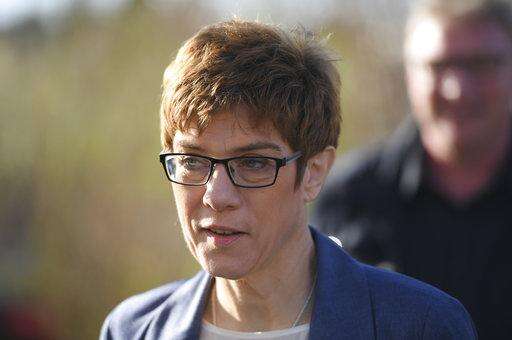 Saarland's Governor and top candidate of the Christian Democrats, CDU, for the state election Annegret Kramp-Karrenbauer, leaves the polling station after casting her vote in Puettlingen, Germany, Sunday, March 26, 2017. The state election in the western German state of Saarland offers German Chancellor Angela Merkel's conservatives a tough test against their resurgent center-left rivals six months before Merkel seeks a fourth term in a national vote. (Arne Dedert/dpa via AP)