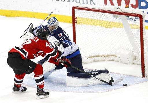 NOTES: Jets D Jacob Trouba got his 100th NHL point with an assist on Ehlers' goal. ... Melchiori's point was his first in 25 NHL games. ... Pietila's assist was his first point 10 games this season. ... New Jersey signed University of Massachusetts-Lowell D Michael Kapla to a two-year, entry-level contract. ... Laine returned to the lineup after missing the last game with an illness.