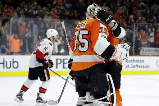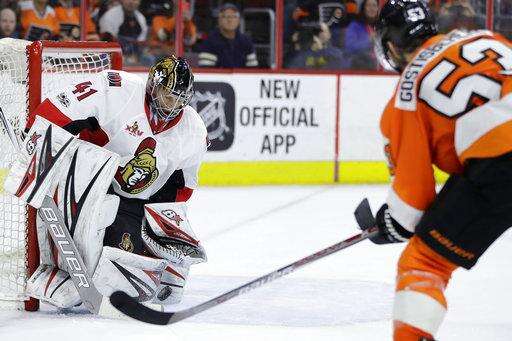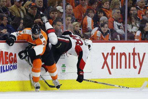 NOTES: The teams finished their season series, with Philadelphia winning 2-1. All three games were decided by 3-2 scores. Ottawa won in a shootout Nov. 15 at Philadelphia, and the Flyers skated to an overtime win at Ottawa on Dec. 1. ... Senators LW Viktor Stalberg (upper body) and D Marc Methot (finger) sat out for the second straight game.