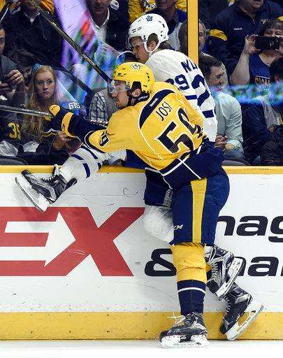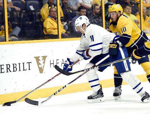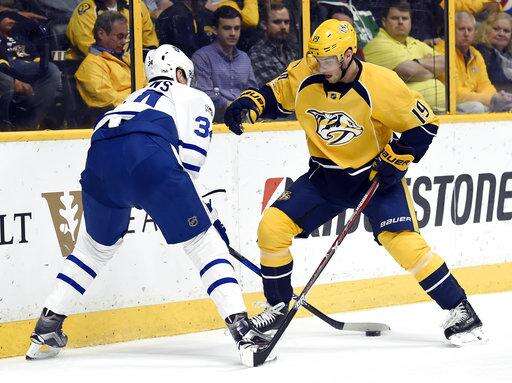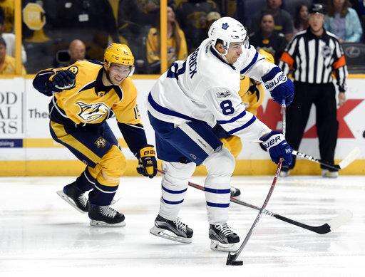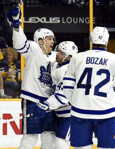 NOTES: Predators forward James Neal went to the locker room midway through the third period after taking a puck to the face in the neutral zone. ... Among the top 30 in games coached, Laviolette came into his 1,000th game ranked seventh in points percentage at 57.8 percent and one of 17 to win the Stanley Cup. ... It was the 10th time this season Toronto scored multiple power-play goals. The Maple Leafs had just six such games last season. ... Predators forward Craig Smith was scratched with an upper-body injury. Fisher returned after missing four games with an injury.