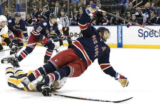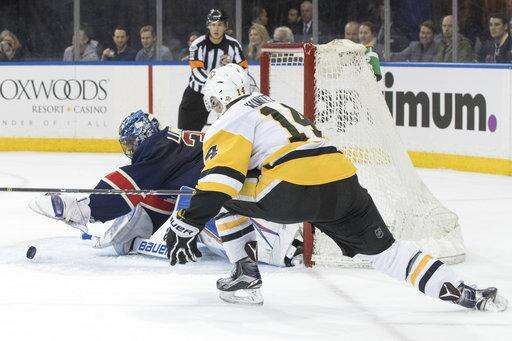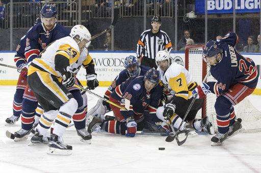 NOTES: Holden participated in his 299th career NHL game and is one of four Rangers skaters to have played in every game of the season. ... Rangers F Jimmy Vesey was a healthy scratch and missed his second game of the season. ... The Rangers scratched D Adam Clendening, F Tanner Glass, D Steven Kampfer and F Brandon Pirri. ... Penguins D Ron Hainsey returned to the lineup after missing the previous seven games. ... Pittsburgh C Evgeni Malkin missed his eighth consecutive game with a shoulder injury. ... Penguins F Carl Hagelin did not play for the 11th straight game due to a lower-body injury.