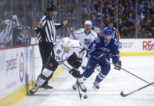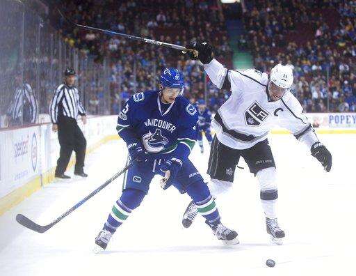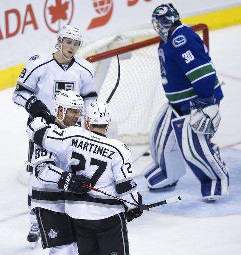 NOTES: Griffen Molino, who signed a two-year contract as a college free agent with Vancouver on Tuesday, made his NHL debut. The 23-year-old forward had 15 goals and 18 assists in 40 games with Western Michigan University this season. ... Canucks F Drew Shore and brother Nick Shore, a forward with the Kings, played against each other in the NHL for the first time. Drew Shore picked up an assist on L.A.'s second goal. ... Vancouver backup G Jacob Markstrom, who hasn't played since injuring his right knee during the team's skills competition in late February, will have surgery next week and is out for the year.