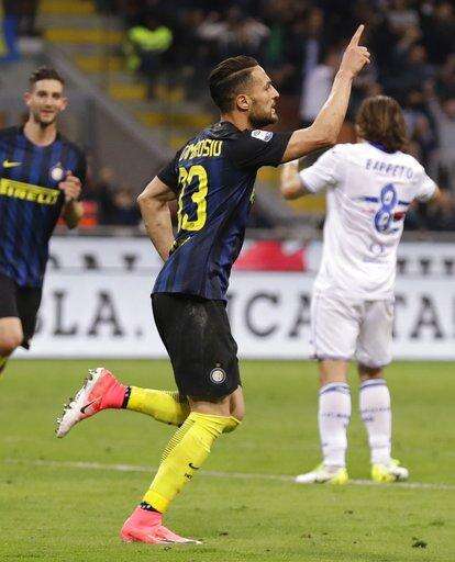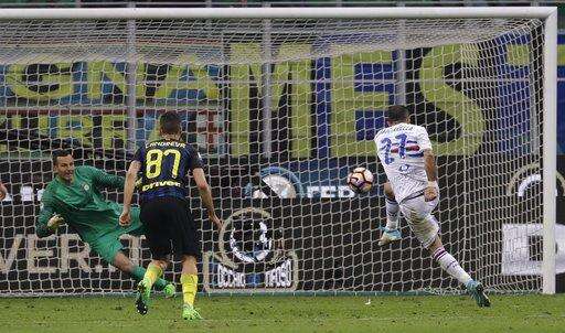 MILAN (AP) - Inter Milan's hopes of sneaking into the Champions League all but evaporated Monday as it lost 2-1 at home to Sampdoria in Serie A.