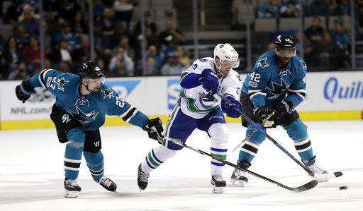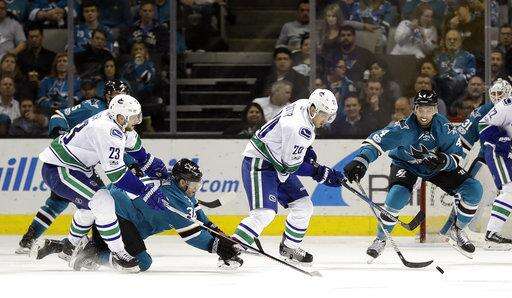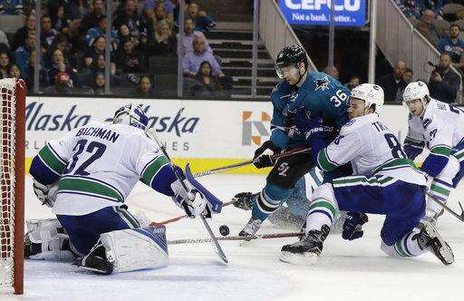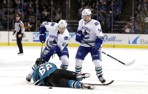 NOTES: Tierney celebrated his 200th NHL contest with a third-period goal. ... Sharks F Joe Pavelski has points in four of his last five games. ... Donskoi snapped a 16-game pointless streak with a pair of assists. ... Canucks D Luca Sbisa ended a 28-game pointless streak. ... Tanev scored his first goal in 15 games. ... Boeser recorded his first career assist.