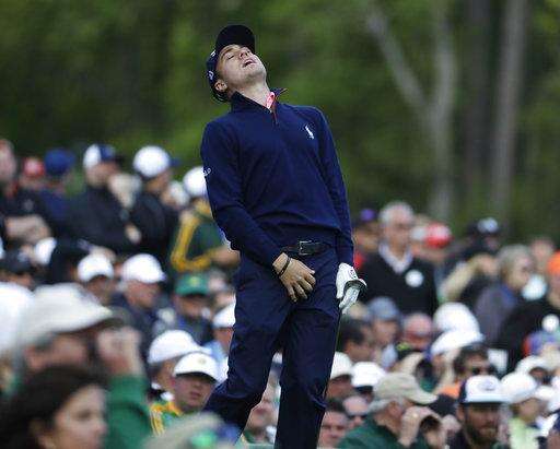 Justin Thomas reacts after his tee shot on the 12th hole during the first round for the Masters golf tournament Thursday, April 6, 2017, in Augusta, Ga. (AP Photo/Chris Carlson) The Associated Press