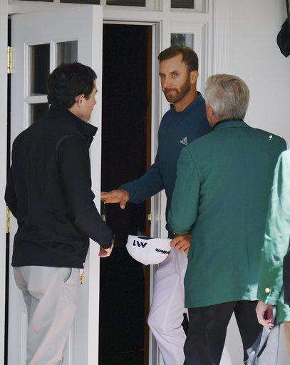 Dustin Johnson heads into the clubhouse after deciding not to play in the opening round of the Masters golf tournament at the Augusta National Golf Club in Augusta, Ga., Thursday, April 6, 2017. The world's No. 1-ranked player was, however, forced to withdraw from the Masters on Thursday because of a lower back injury suffered less than 24 hours earlier in a freak fall at the home he was renting for the week. (Brant Sanderlin/Atlanta Journal-Constitution via AP) The Associated Press
