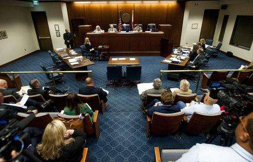 The Alabama Ethics Commission meets in Montgomery, Ala., on Wednesday April 5, 2017. The commission went into executive session to discuss the complaint against Gov.Robert Bentley. The 74-year-old governor admitted personal mistakes after recorded phone calls surfaced of him making sexually charged remarks to a female aide. However, he maintains he did nothing illegal. (Mickey Welsh/The Montgomery Advertiser via AP) The Associated Press