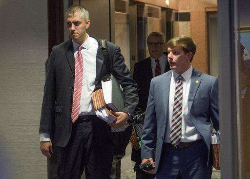 David Byrne, legal advisor for Governor Robert Bentley, attends a meeting of the Alabama Ethics Commission in Montgomery, Ala., on Wednesday April 5, 2017. The commission went into executive session to discuss the complaint against Gov.Robert Bentley. The 74-year-old governor admitted personal mistakes after recorded phone calls surfaced of him making sexually charged remarks to a female aide. However, he maintains he did nothing illegal. (Mickey Welsh/The Montgomery Advertiser via AP) / The Associated Press
