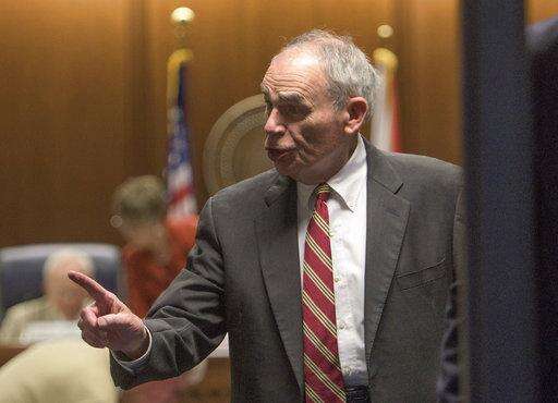 Jerry Fielding, chairman of the Alabama Ethics Commission, speaks during a meeting of the commission in Montgomery, Ala., on Wednesday April 5, 2017. The commission went into executive session to discuss the complaint against Gov.Robert Bentley. The 74-year-old governor admitted personal mistakes after recorded phone calls surfaced of him making sexually charged remarks to a female aide. However, he maintains he did nothing illegal. (Mickey Welsh/The Montgomery Advertiser via AP) The Associated Press