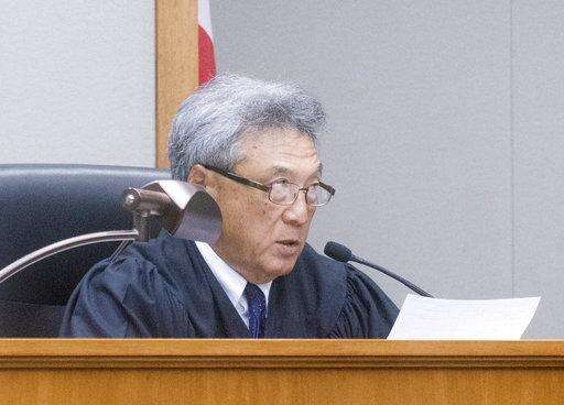 Judge Greg Nakamura speaks to Peter Kema Sr. in Hilo Circuit Court in Hilo, Hawaii on Wednesday, April 5, 2017. Peter Kema Sr., the father of a Hawaii boy who went missing 20 years ago pleaded guilty to manslaughter Wednesday in a deal with prosecutors that requires him to reveal the location of the child's body. (Hollyn Johnson/Hawaii Tribune-Herald via AP, Pool)