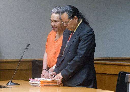 Peter Kema Sr., left, pleads guilty to manslaughter and first-degree hindering prosecution in the death of his son, Peter Kema Jr., also known as "Peter Boy," who went missing in 1997, in Hilo Circuit Court in Hilo, Hawaii on Wednesday, April 5, 2017. Peter Kema Sr. also agreed to a 20-year prison sentence, with a mandatory minimum of six years and eight months if he helps authorities find the remains of his son, Peter Jr., who was 6 when he disappeared. (Hollyn Johnson/Hawaii Tribune-Herald via AP, Pool)