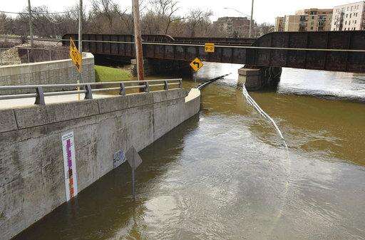 Recent rains have resulted in flooding on Thursday, April 6, 2017, near the Des Plaines River in Des Plaines, Ill. (Bob Chwedyk/Daily Herald via AP)
