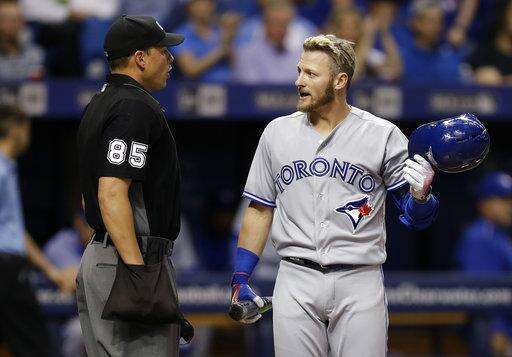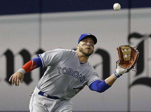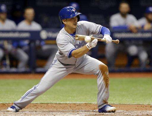 Toronto went up 5-0 on Barney's bunt that first baseman Logan Morrison was charged with an error for mishandling in the seventh. Barney had two hits and walked once.