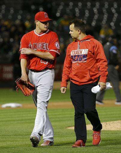 OAKLAND, Calif. (AP) - Garrett Richards felt some cramping in his biceps, as if someone had punched him in his pitching arm.