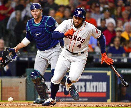 The Astros struggled against Seattle starter James Paxton, a hard-throwing lefty. If they weren't behind on his mid-90s fastballs, they were chasing off-speed pitches in the dirt. Two Astros batters reached base after striking out on wild pitches that got past Seattle catcher Mike Zunino.