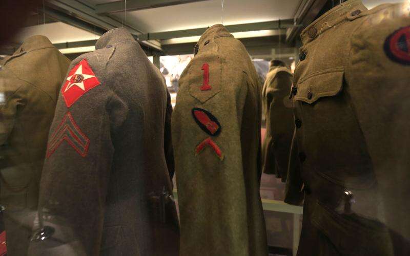 Uniforms hang on display at the National World War I Museum in Kansas City, Mo. Associated Press