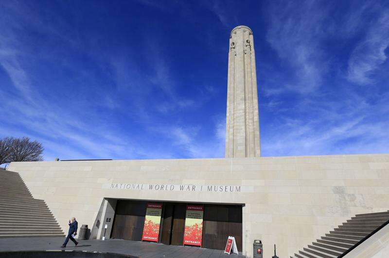 A visitor leaves the National World War I Museum in Kansas City, Mo. Associated Press