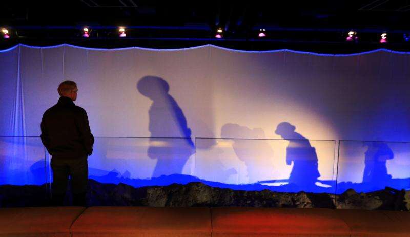 A visitor watches a video presentation at the National World War I Museum. Associated Press