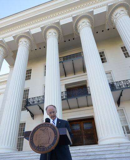 Alabama Gov. Robert Bentley speaks during a news conference on Friday, April 7, 2017, outside the Alabama Capitol building in Montgomery, Ala. Bentley vowed again he won't resign even as his political troubles mounted and lawmakers said they would move forward with impeachment hearings because of a sex scandal.(Albert Cesare /The Montgomery Advertiser via AP) The Associated Press
